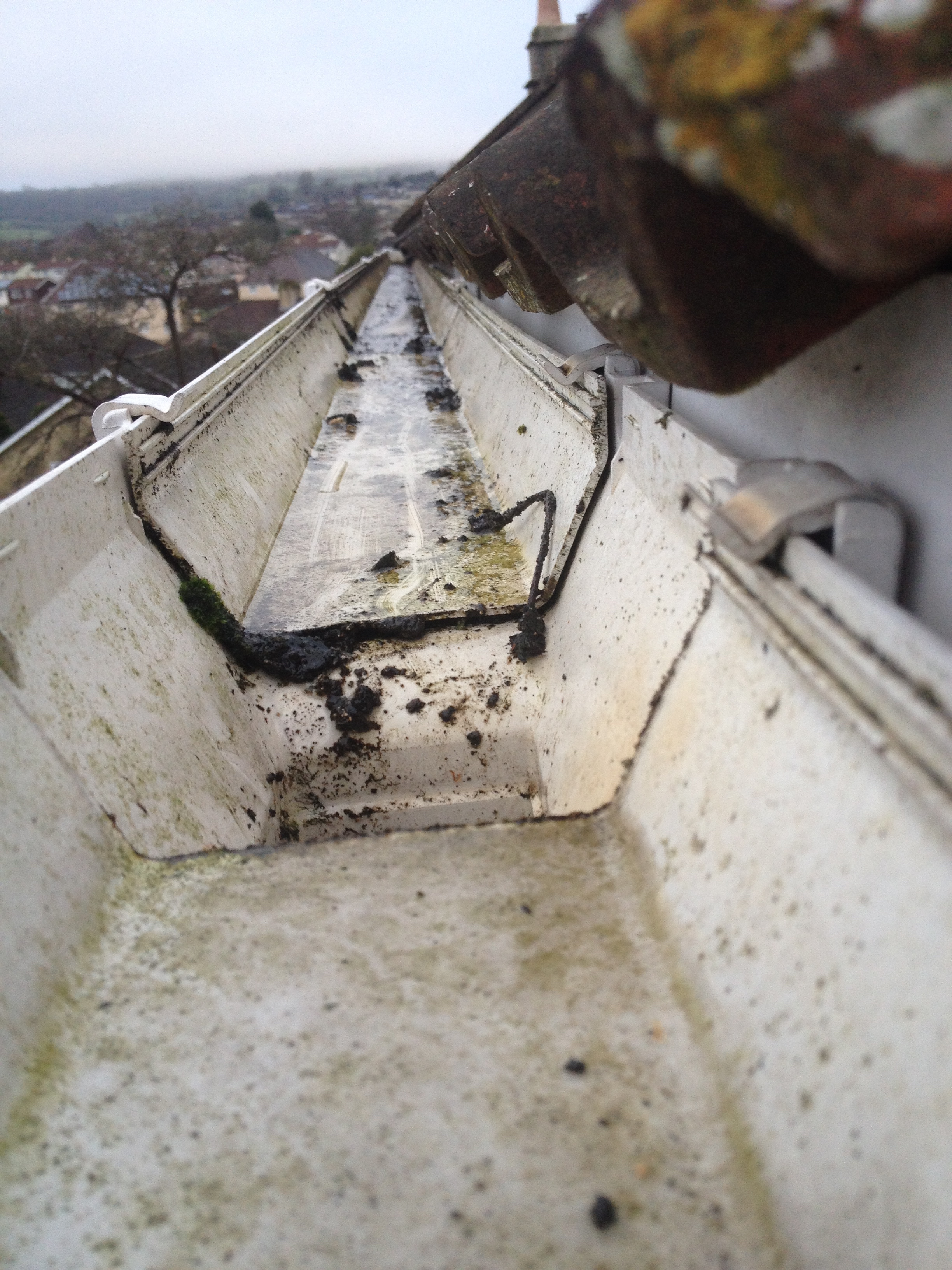 Clean and bright windows cleaning the blocked gutters on a residential Bath property. Hows that for clean gutters!